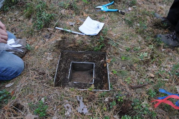 The best way of sampling the forest floor is by using a frame (e.g. 20 x 20 cm2). The litter layer and other organic material is not stored very densely and therefore need to be sampled carefully and undisturbed. A well-developed organic layer, like mor (e.g. in boreal forests) can also be sampled using a soil auger.