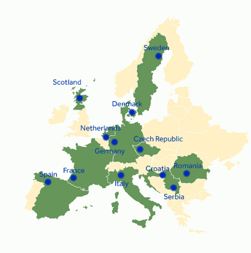 To answer these questions, we explored public perspectives across 12 SUPERB project countries: Sweden, Denmark, the Netherlands, Scotland, Germany, France, Italy, Spain, Serbia, Croatia, Czechia. We conducted qualitative interviews with key informants in 5 selected regions to gain initial insights into people’s relationships with forests and forest restoration (Kazungu & Hunziker, 2025). Based on this knowledge, we then conducted representative surveys of the public in these regions (Kazungu et al. 2025) and across all 12 SUPERB countries (online panel survey, n > 12,000).