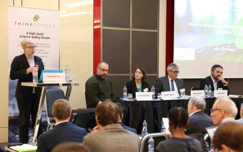 Prof. Tomáš Hlásny, Czech University of Life Sciences, shared the conclusions of the new EFI From Science to Policy study, Living with bark beetles: impacts, outlooks and management options. He emphasised the need for international cooperation, data sharing and monitoring, as well as taking a holistic approach to disturbance management at a landscape scale, balancing between risk reduction approaches and fostering forest resilience.